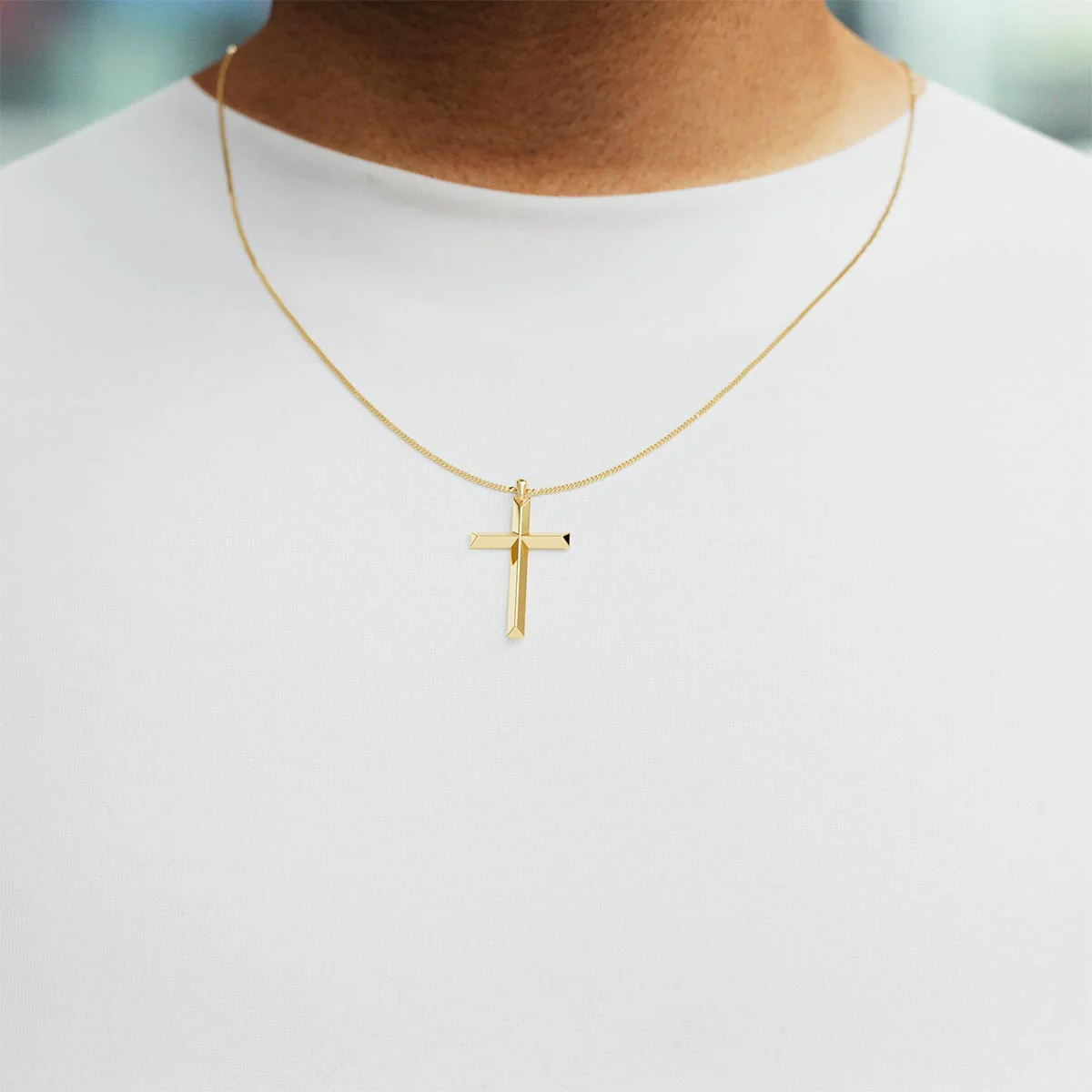14k Solid Yellow Gold Knife Edge Cross Pendant